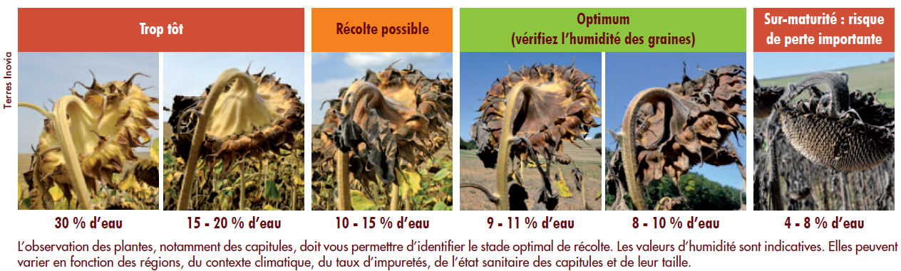 Une récolte en surmaturité, avec un taux d’humidité des graines réduit à 5 %, peut entraîner une baisse de marge de 55 €/ha — en l’absence de pertes de graines et sans remise aux normes d’humidité —, jusqu’à 140 €/ha en cas de perte de 2 q/ha, toujours sans correction d’humidité. Ces pertes sont à comparer à une récolte effectuée au stade optimal, soit à 9 % d’humidité.